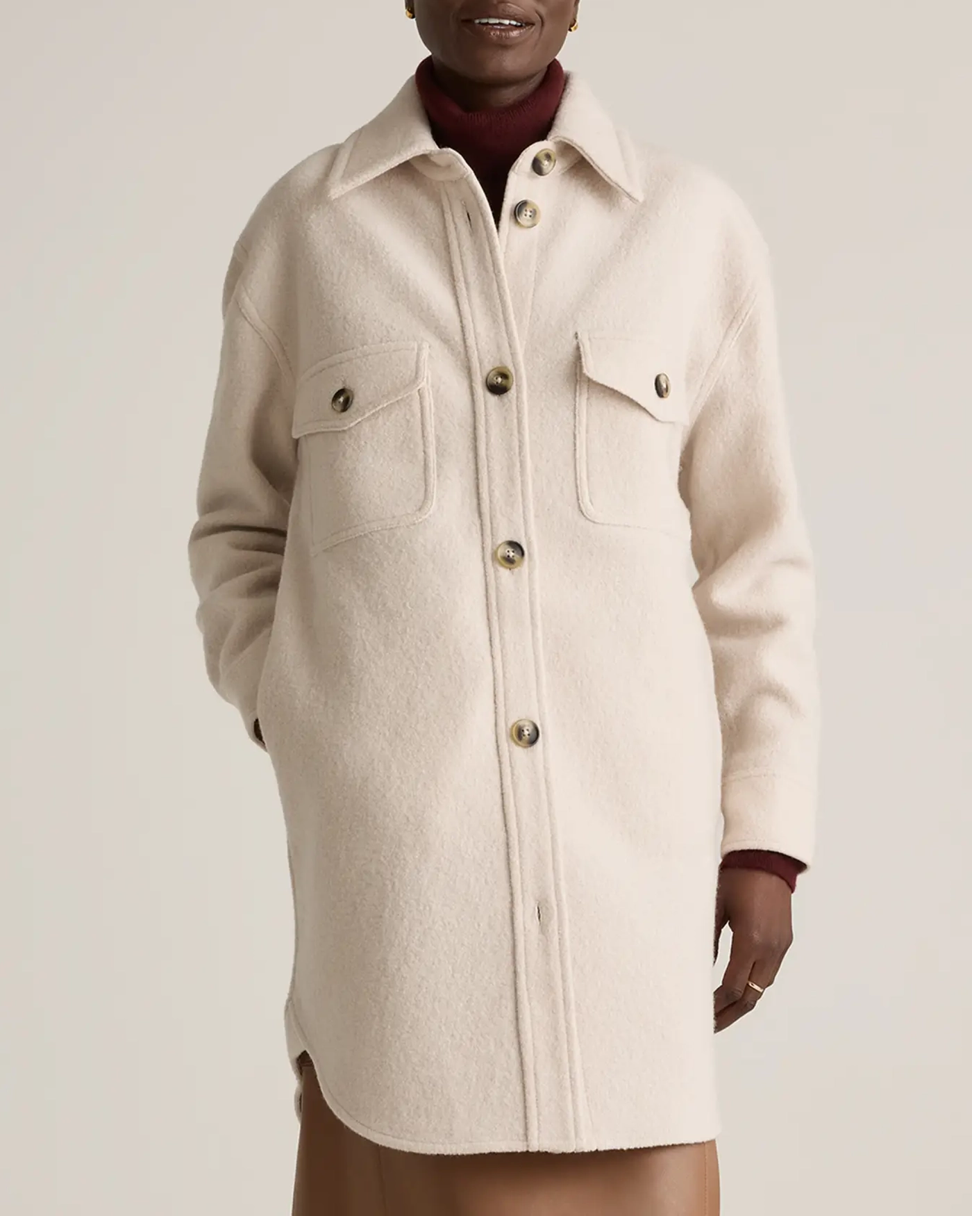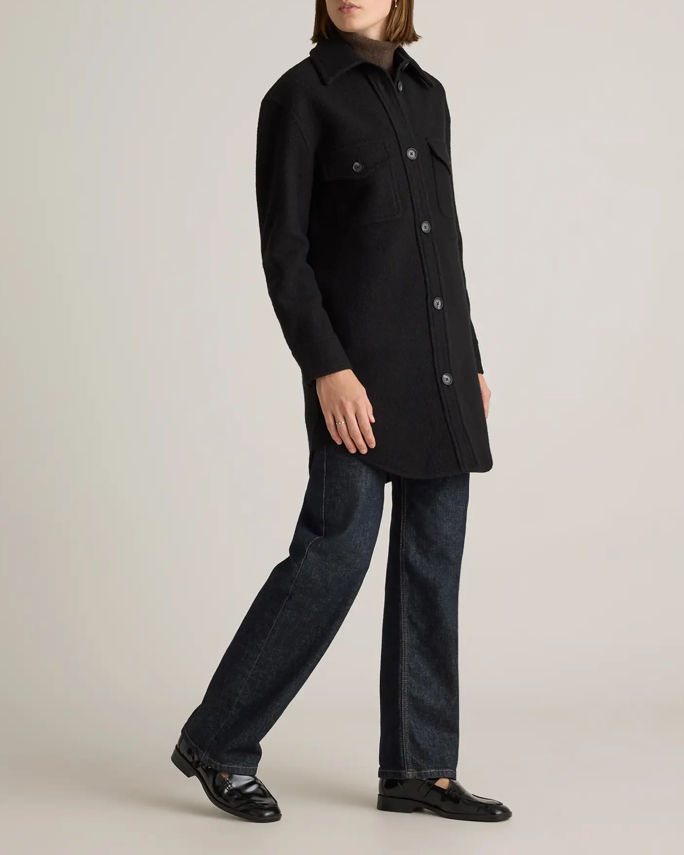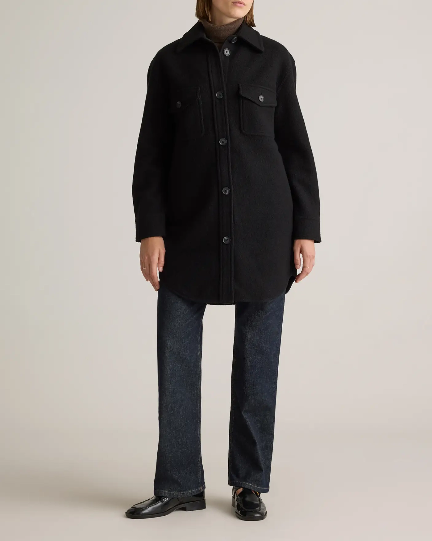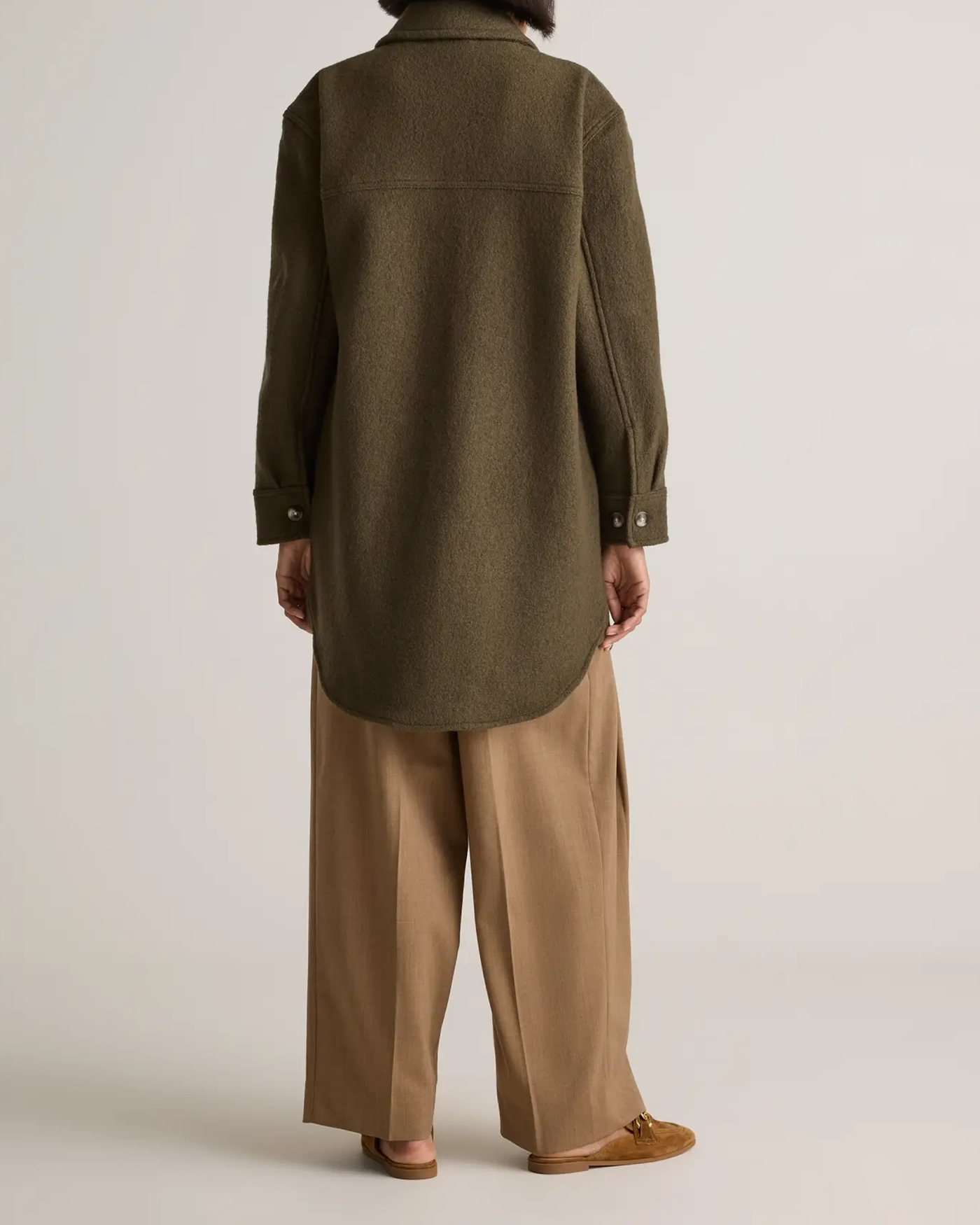 Our 100% Merino Wool Long Shirt Jacket is your perfect go-to style as the temperature starts to drop. Expertly tailored with boiled merino wool, this shirt jacket - shacket - has the relaxed silhouette of a shirt, but provides the warmth of a jacket. With an intentionally oversized look, it's perfect for layering and made to throw on over any outfit with ease.