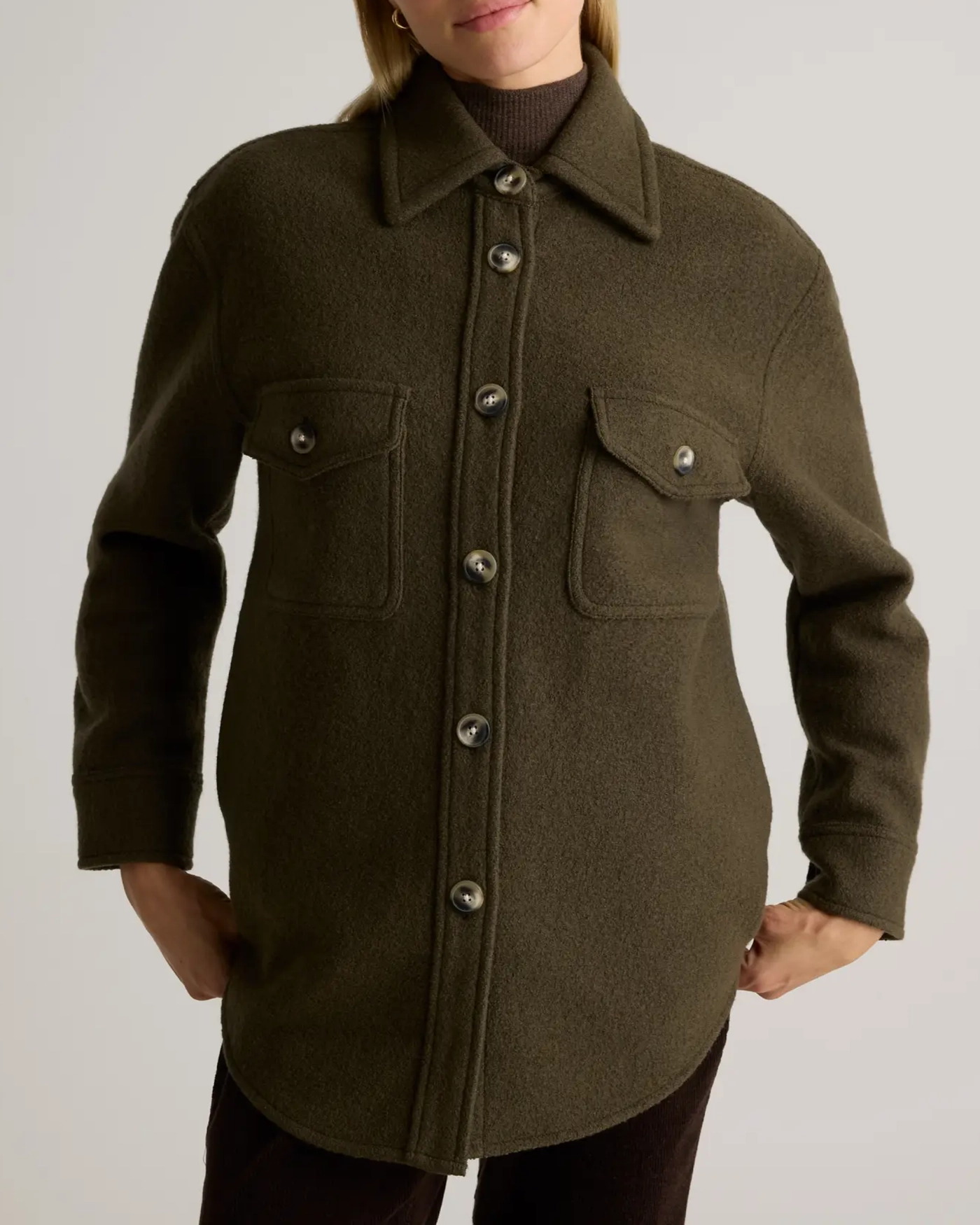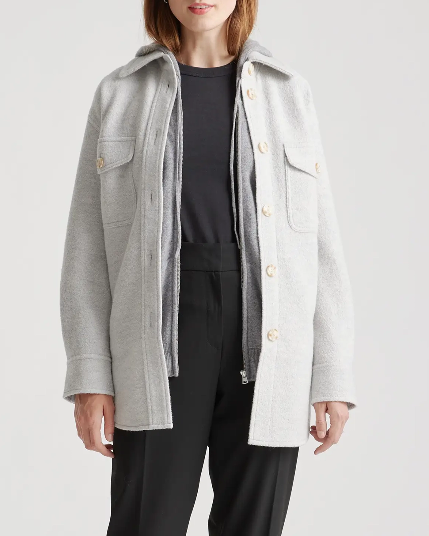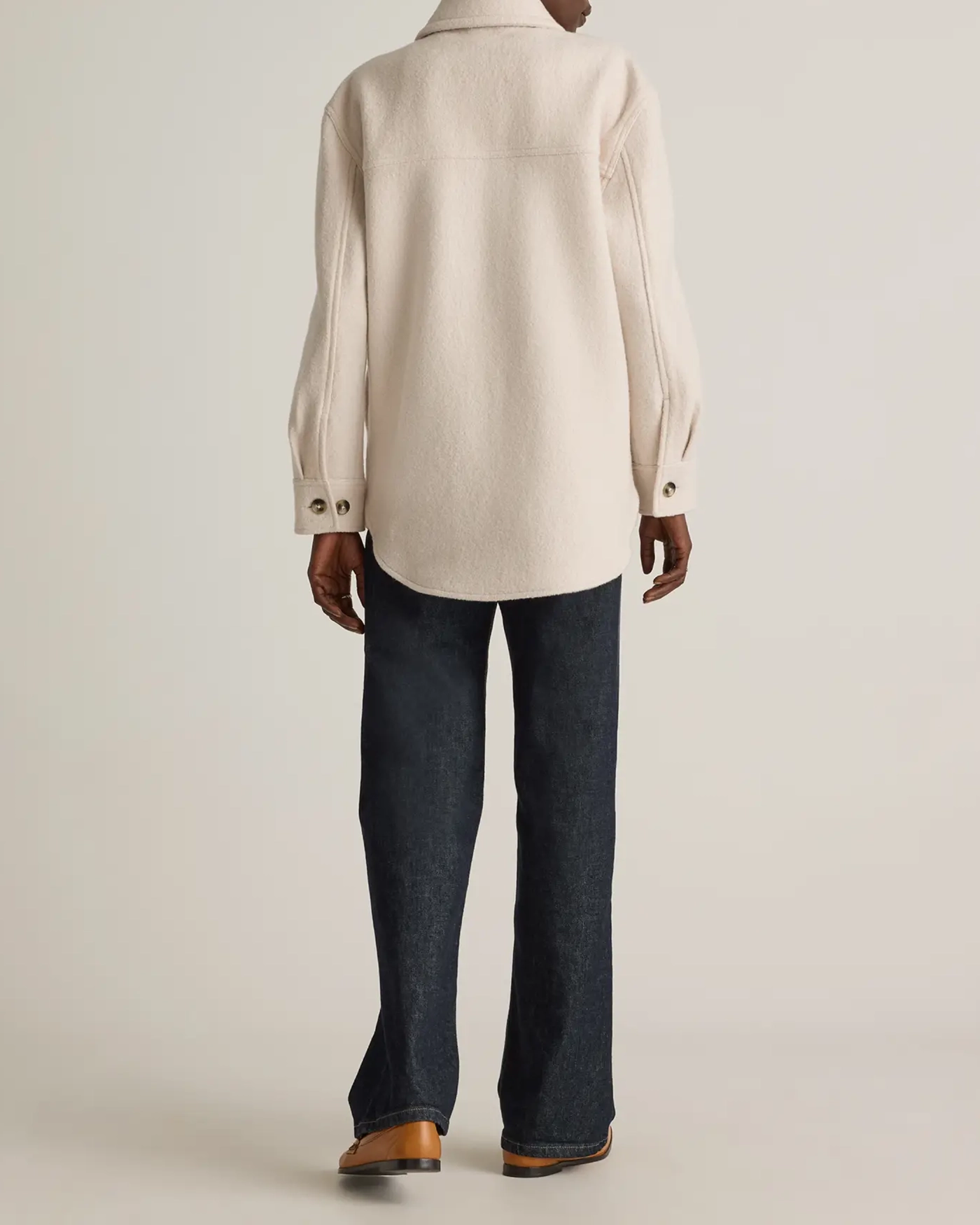 Our 100% Merino Wool Shirt Jacket is your perfect go-to style as the temperature starts to drop. Expertly tailored with boiled merino wool, this shirt jacket - shacket - has the relaxed silhouette of a shirt, but provides the warmth of a jacket. With an intentionally oversized look, it's perfect for layering and made to throw on over any outfit with ease.