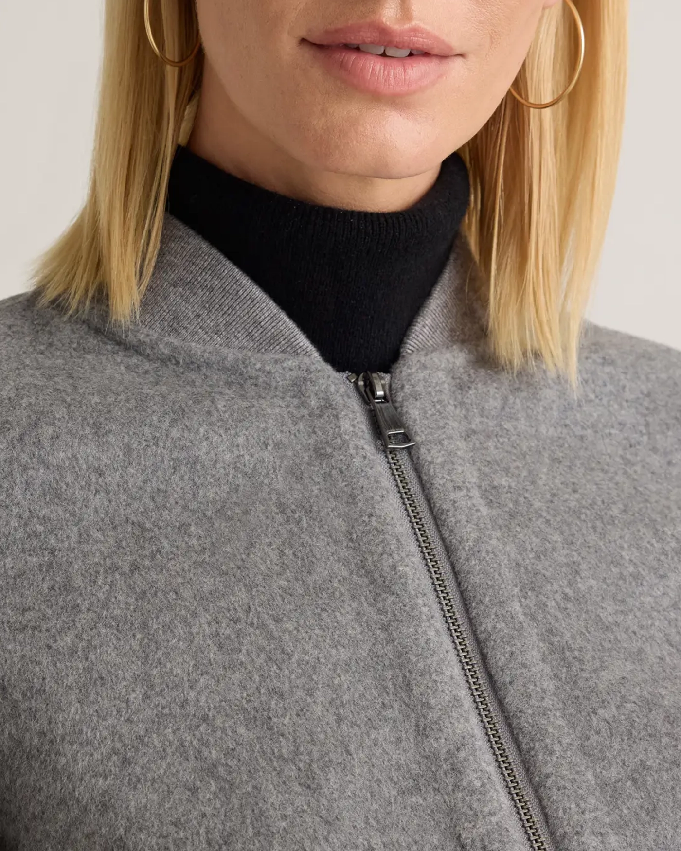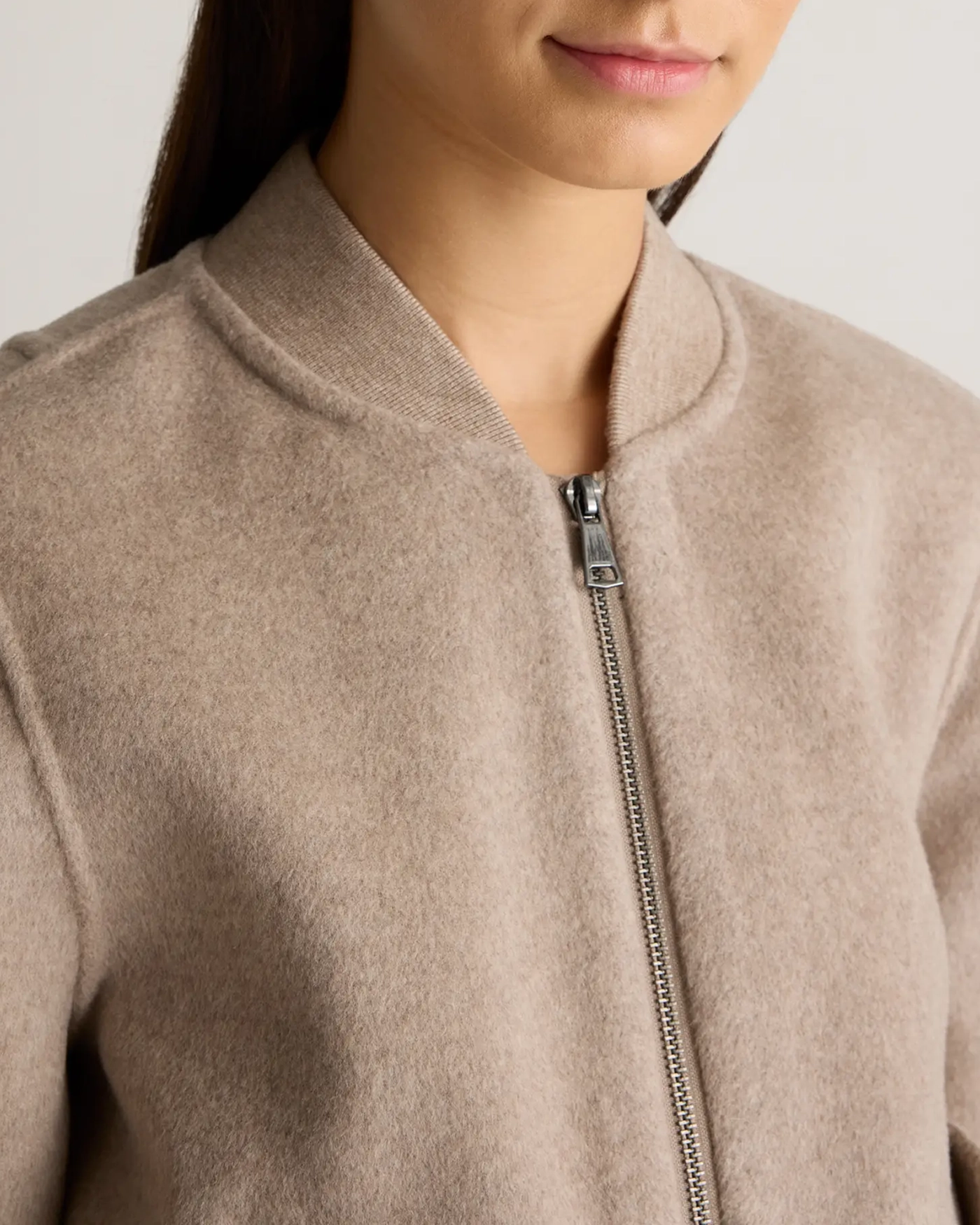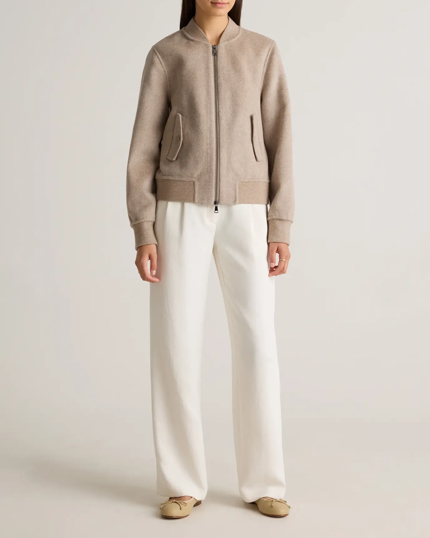Stay warm and stylish this season with our Double-Faced Merino Wool Bomber Jacket. The bomber silhouette adds a modern touch, while the luxurious and ultra-soft merino wool keeps you cozy on chilly days. Perfect for layering over your favorite outfits, this versatile jacket is a must-have addition to your wardrobe.