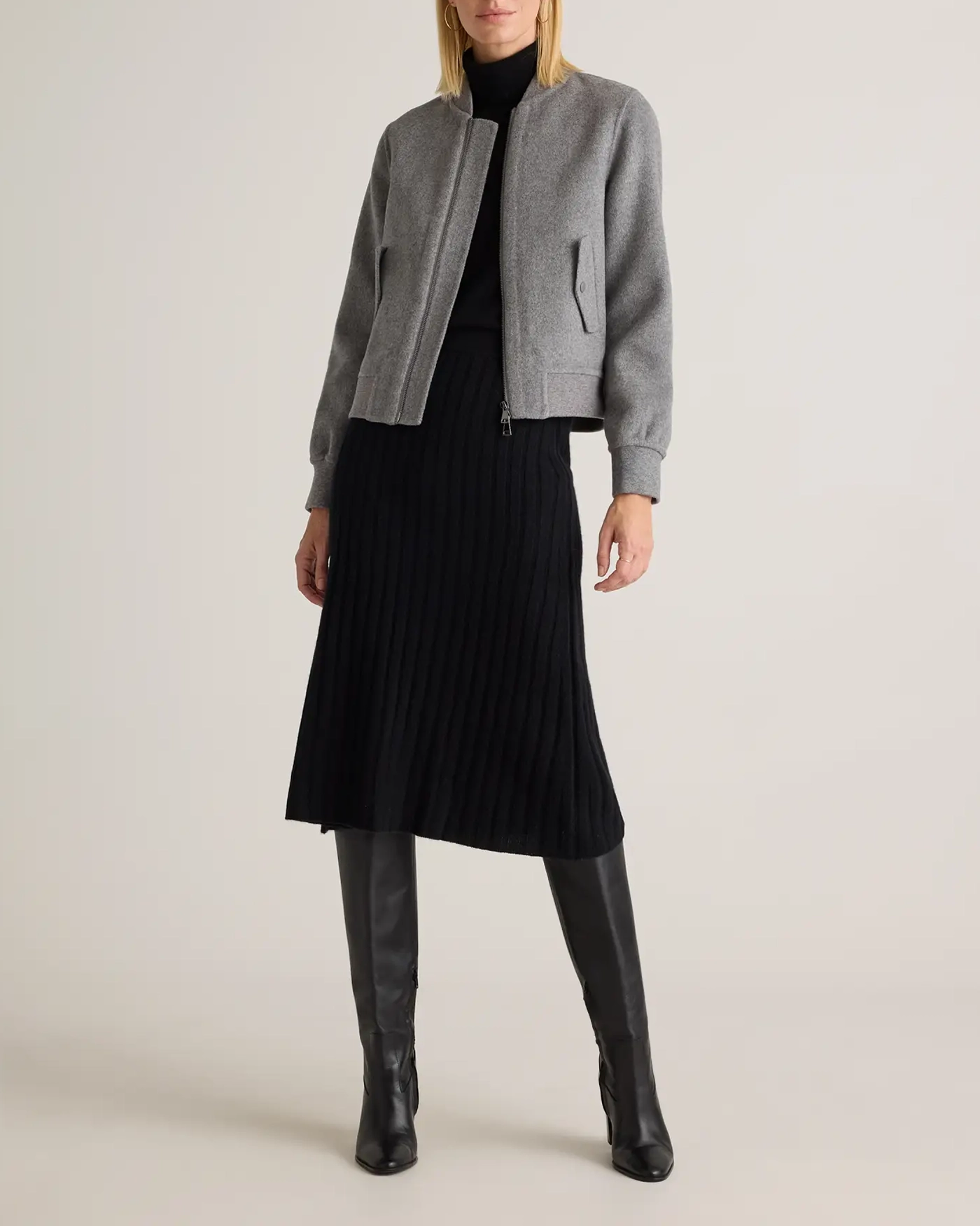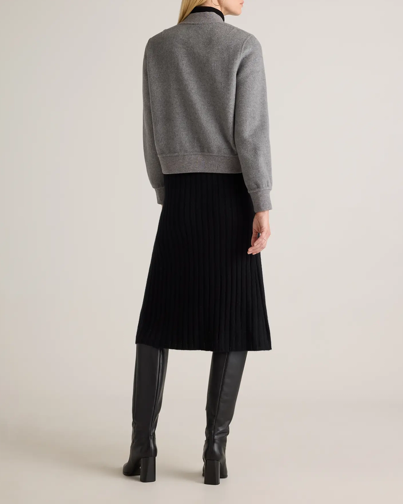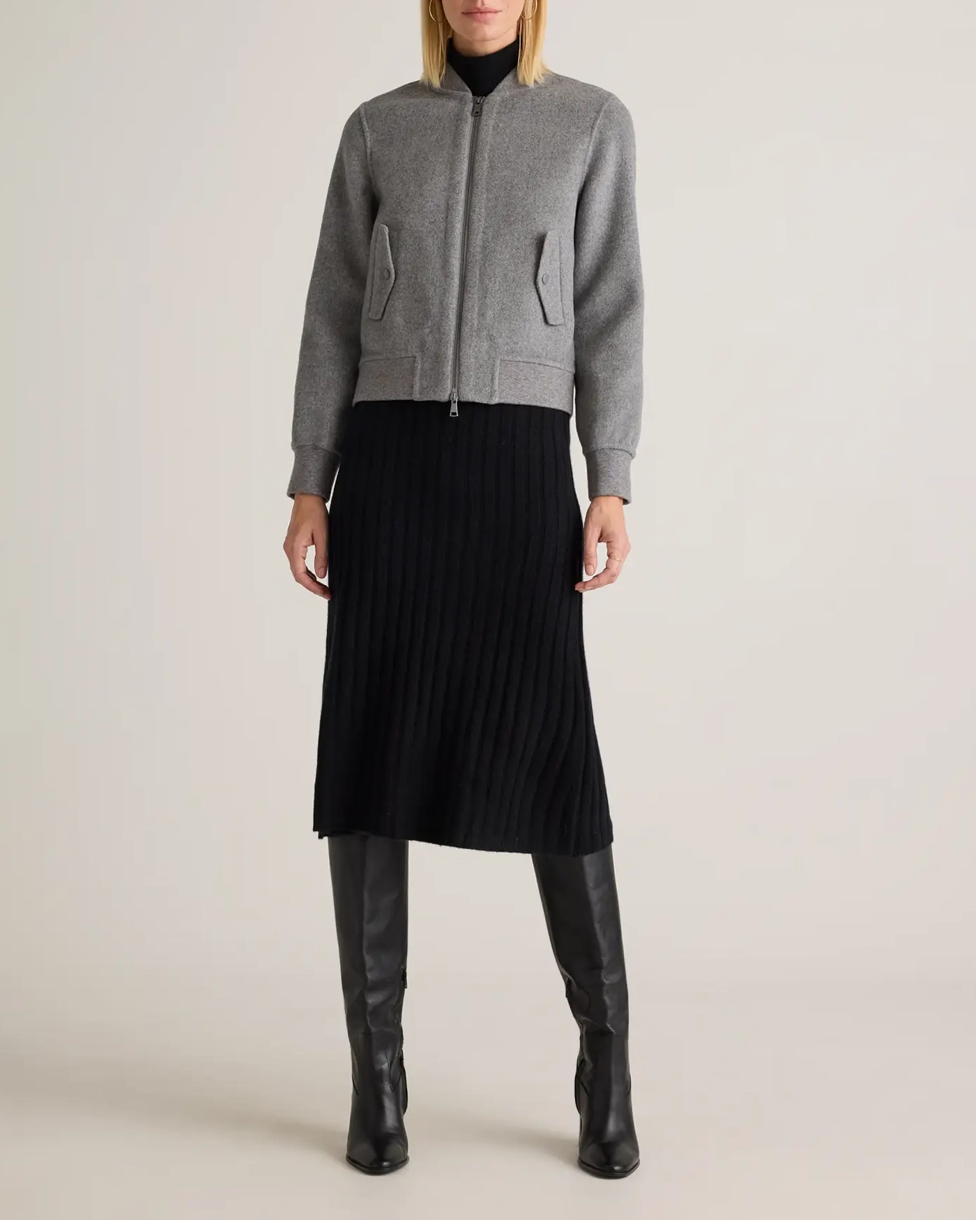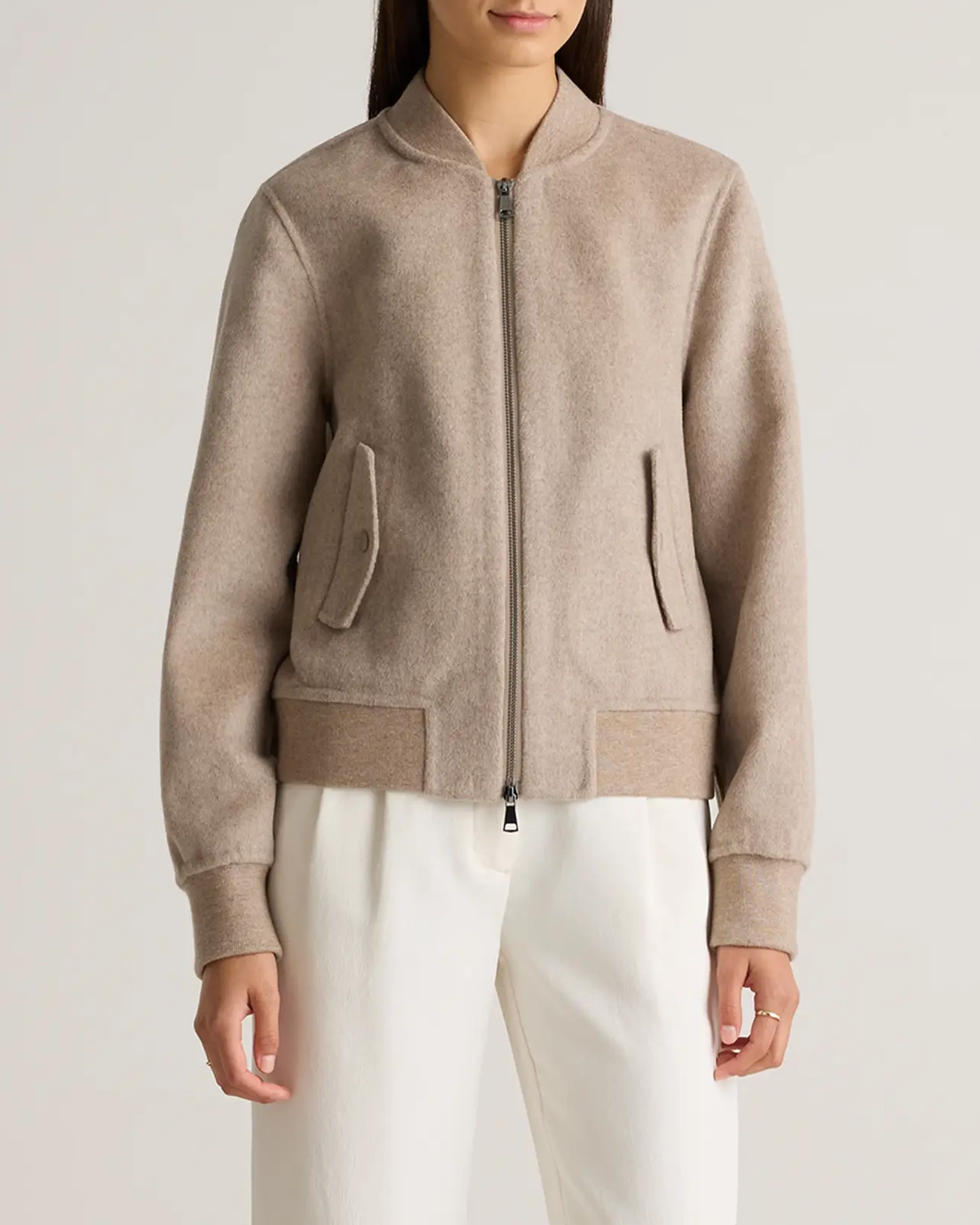 Stay warm and stylish this season with our Double-Faced Merino Wool Bomber Jacket. The bomber silhouette adds a modern touch, while the luxurious and ultra-soft merino wool keeps you cozy on chilly days. Perfect for layering over your favorite outfits, this versatile jacket is a must-have addition to your wardrobe.