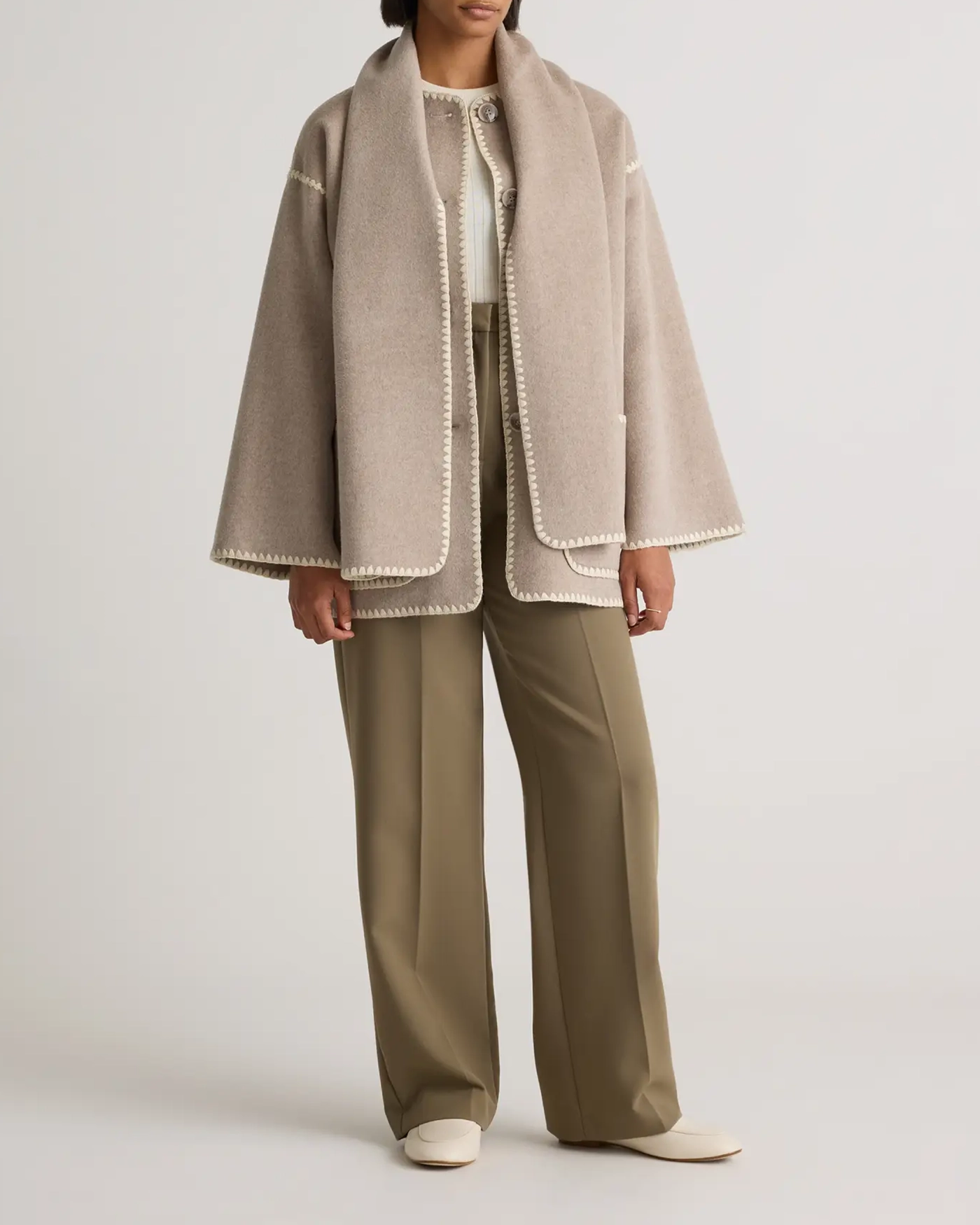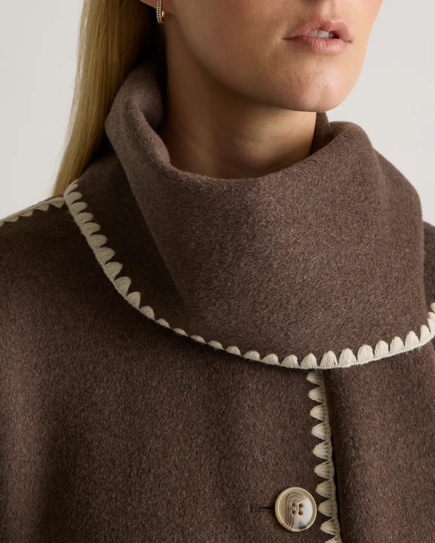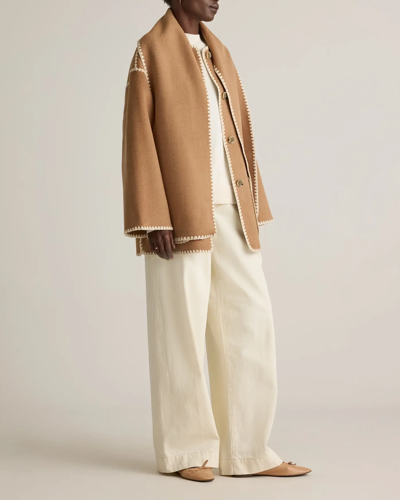 Effortless, cozy, chic. If those adjectives describe your style preferences, then you're in luck—because they also describe our Double-Faced Merino Wool Scarf Coat. Made from a substantial and structured wool-blend felt, this jacket is just what your wardrobe has been waiting for. The attached scarf and delicate embroidery give it a bespoke, artisanal feel while the oversized fit gives warmth and comfort you can really wrap up in.