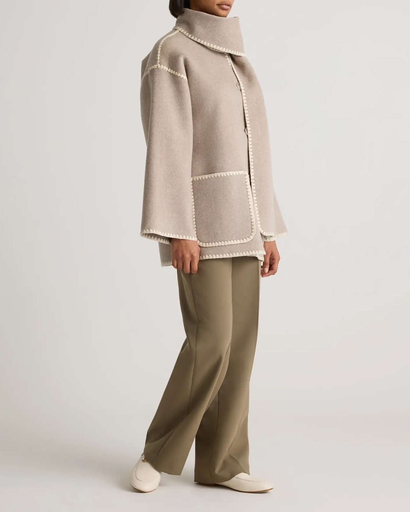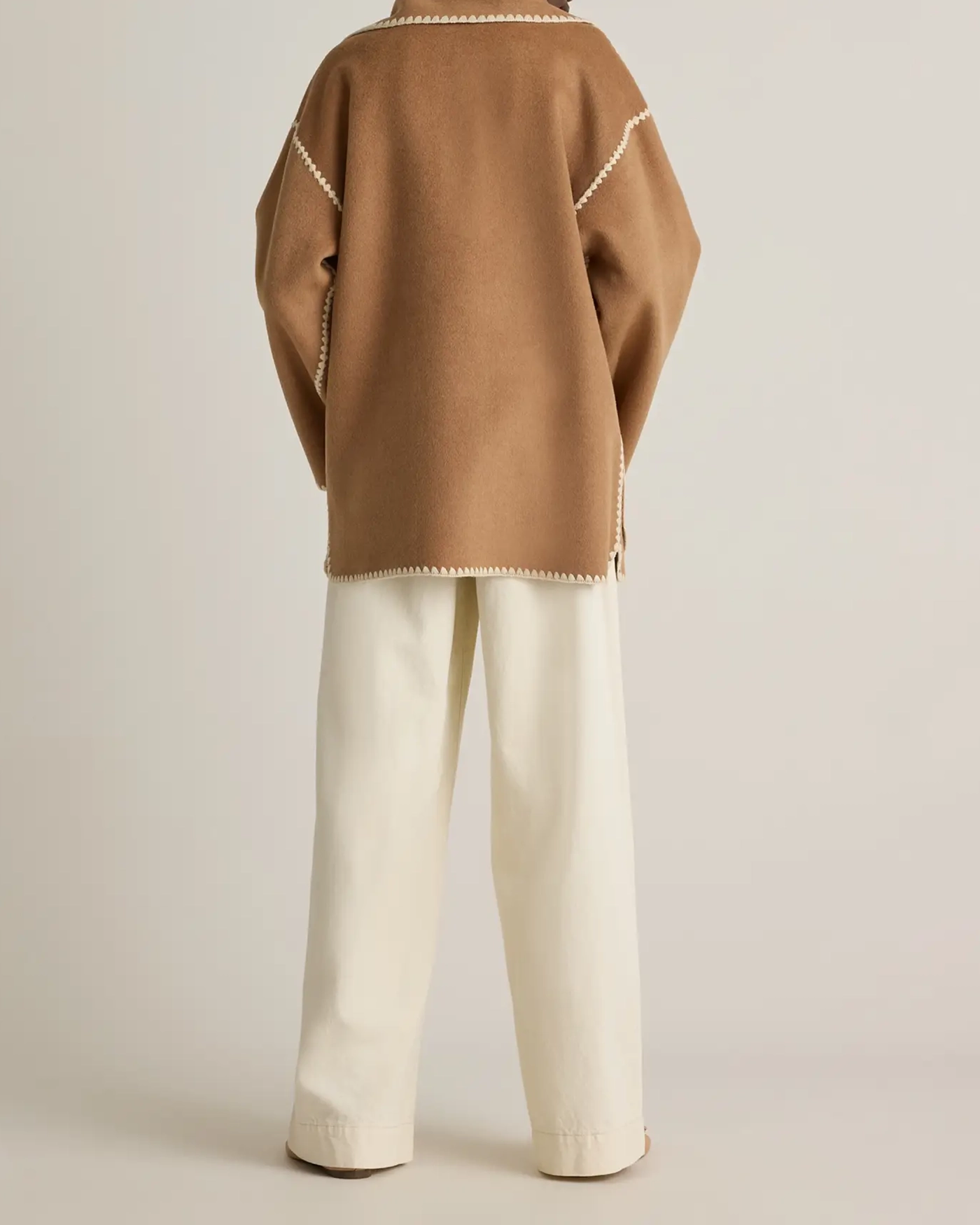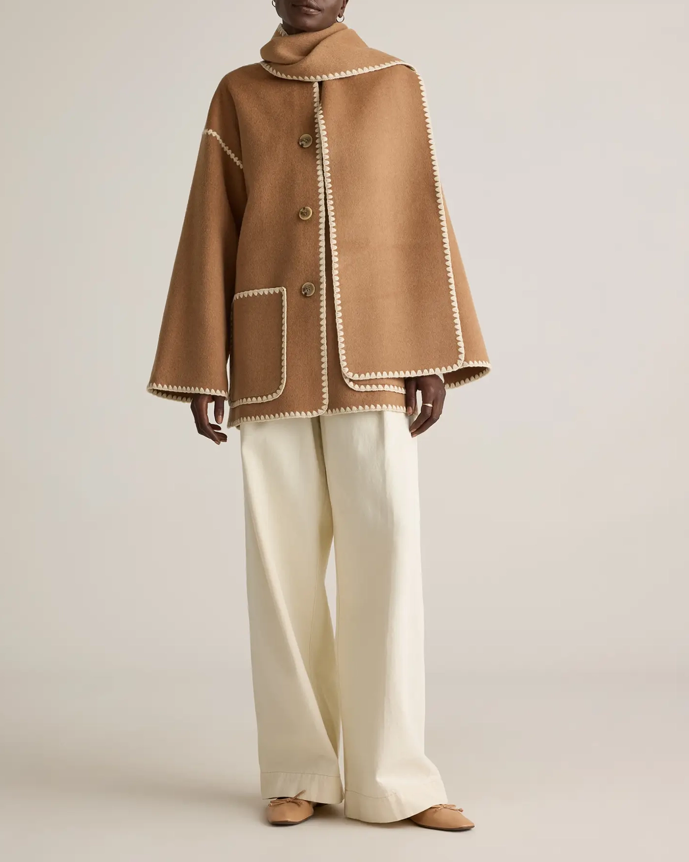 Effortless, cozy, chic. If those adjectives describe your style preferences, then you're in luck—because they also describe our Double-Faced Merino Wool Scarf Coat. Made from a substantial and structured wool-blend felt, this jacket is just what your wardrobe has been waiting for. The attached scarf and delicate embroidery give it a bespoke, artisanal feel while the oversized fit gives warmth and comfort you can really wrap up in.