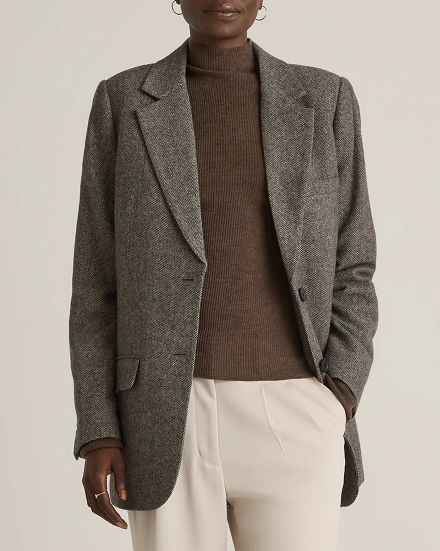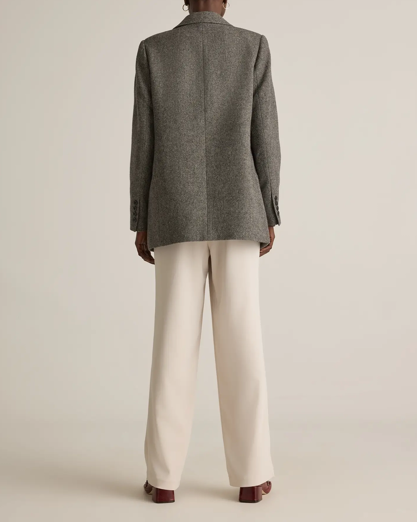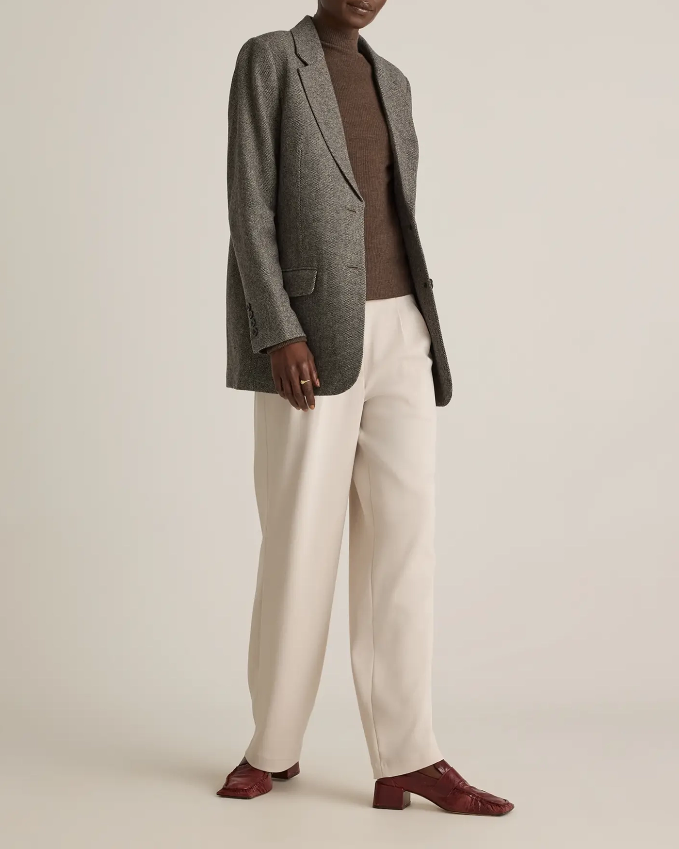 Permission to upgrade, granted. Reimagine your next ensemble with our Italian Wool Oversized Blazer. Made from recycled Italian wool, this blazer boasts a cool drape and serious warmth. You'll love the cuff buttons, practical flap pockets, and classic notched lapels. Elevate your style effortlessly with this timeless look.