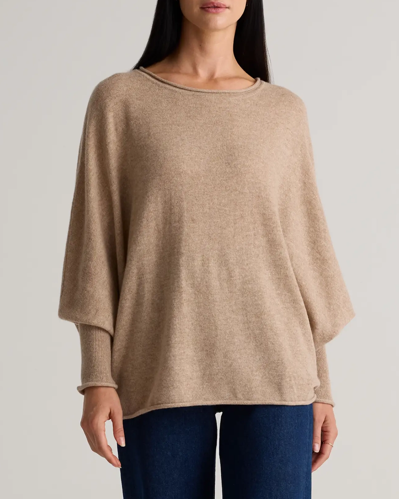We're putting a twist on classic cashmere. Our cashmere batwing sweater offers a bold look when a basic crew or v-neck just won't do. Oversized with a slouchy batwing to give a little edge to your fit. Our quality cashmere is incredibly long-lasting and three times as warm as wool, sourced sustainably and ethically.