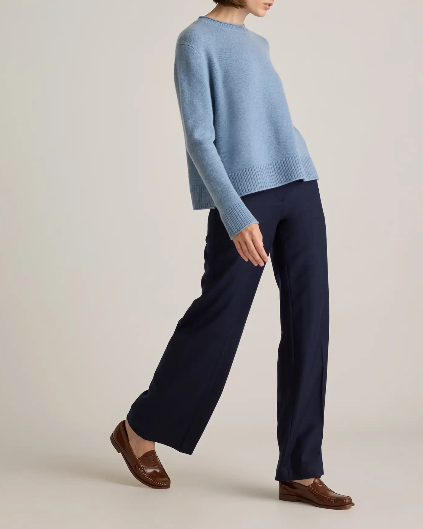 It's all in the details with our Mongolian Cashmere Boxy Crewneck Sweater. Crafted in a fine-gauge knit, this cozy sweater is designed with drop shoulders, delicate rolled edges, and a split hem to set it apart from our classic crew. Cut with a boxy silhouette for ease of movement, this comfy style puts a fresh spin on the classic crewneck.