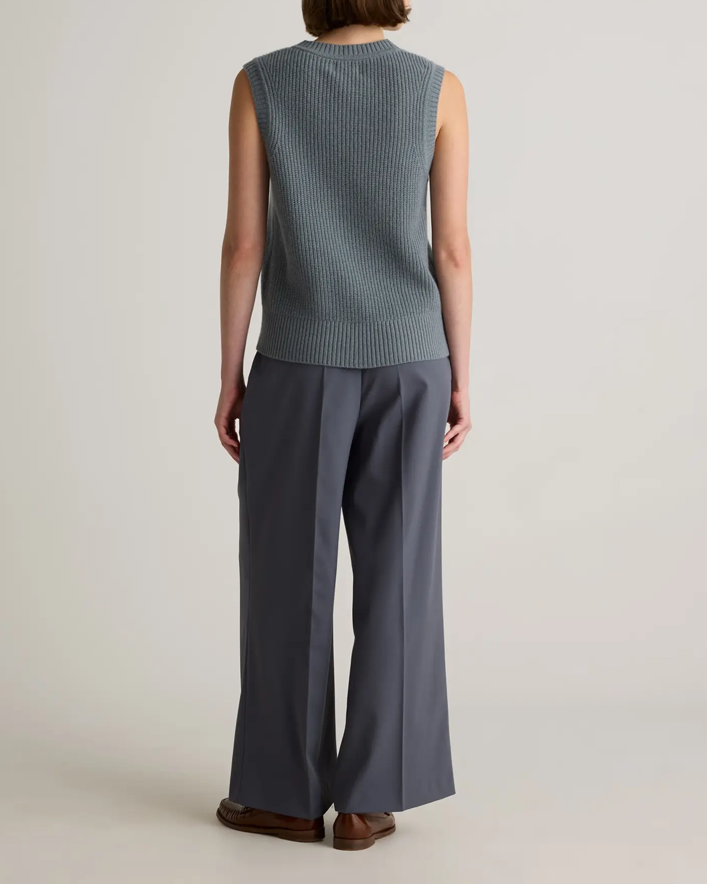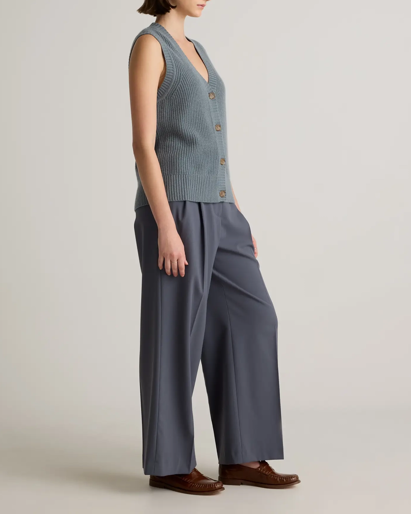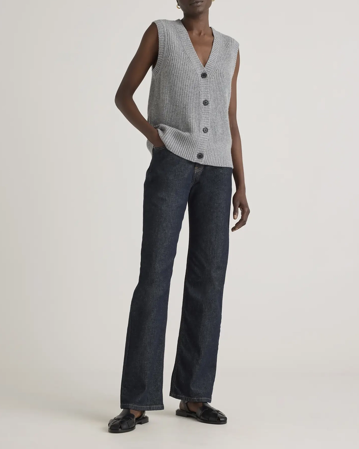 Say yes to sweater vests in 100% Grade-A Mongolian cashmere. This fresh take on a fisherman sweater comes complete with allover ribbed detailing and classic buttons. Wear it as a standalone or over a cami for a luxuriously soft layering piece. It’s the cozy-chic transitional top you’ll want to wear with everything.
