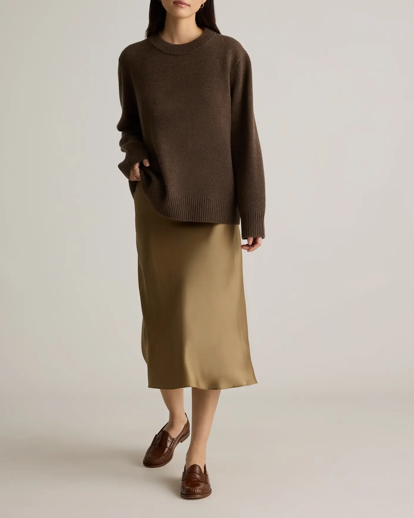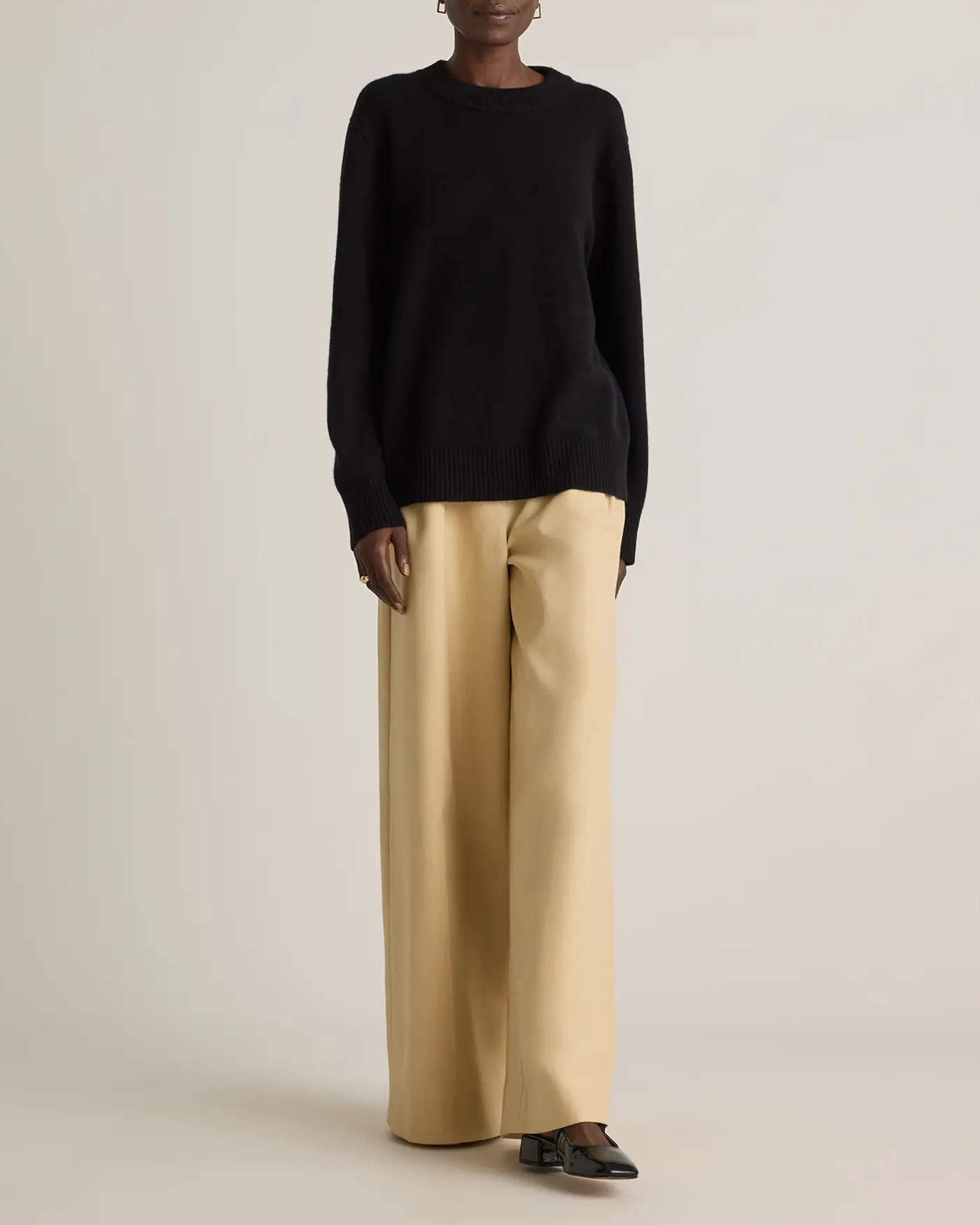 It's our classic crewneck sweater, supersized. With an extra-slouchy boyfriend fit, our cozy Mongolian Cashmere Oversized Crewneck Sweater is the quietly luxurious layer you've been looking for. Crafted in an indulgent medium-gauge cashmere knit with a wide-ribbed neckline and cuffs, it's the ultimate in coziness.