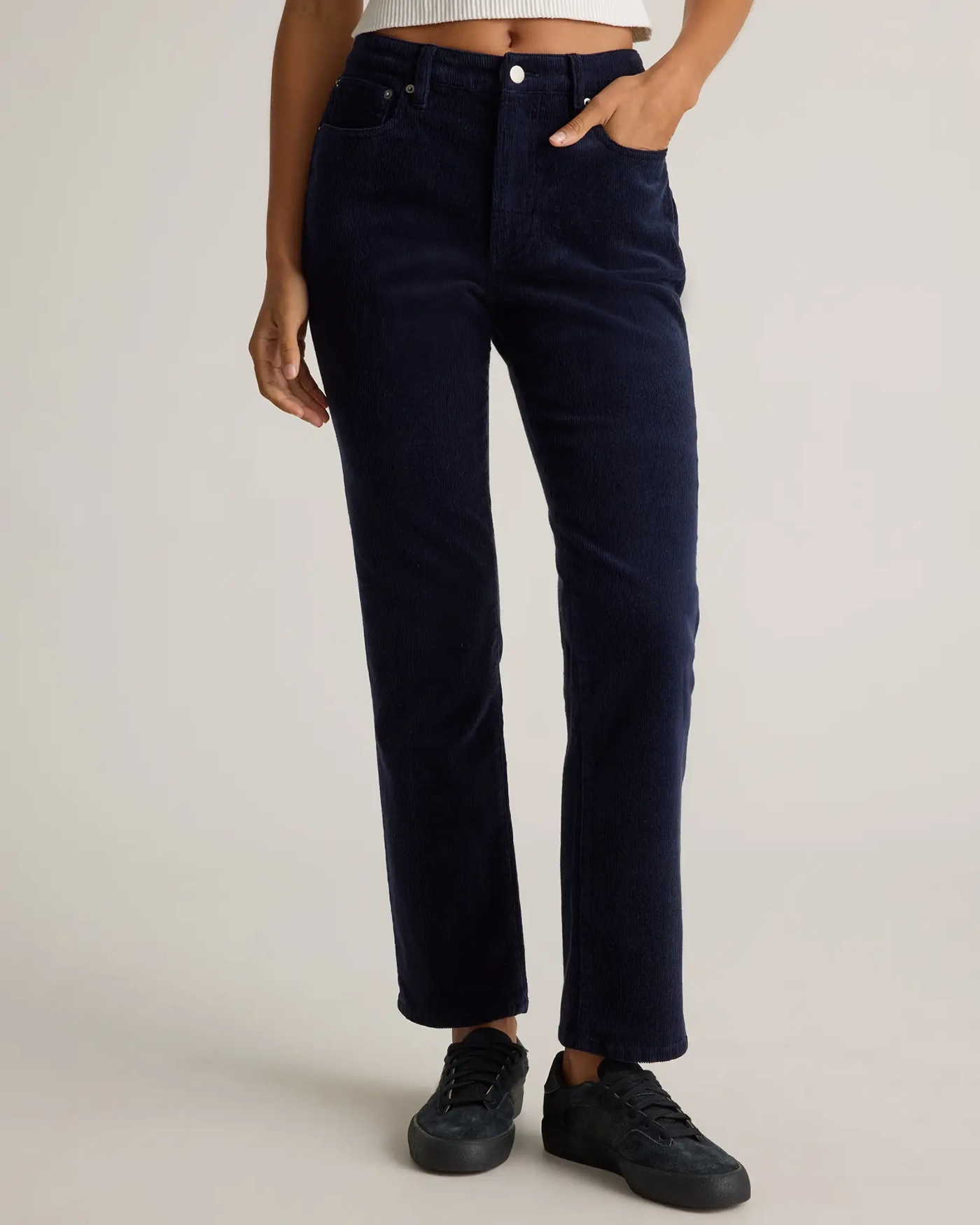 Introducing our new Organic Stretch Corduroy Straight Leg Pants: think soft, velvety texture paired with a classic straight leg. We'll be staying comfy thanks to the cotton stretch and pairing with everything from graphic tees to more tailored blouses.