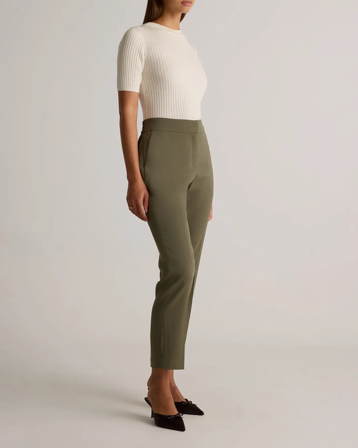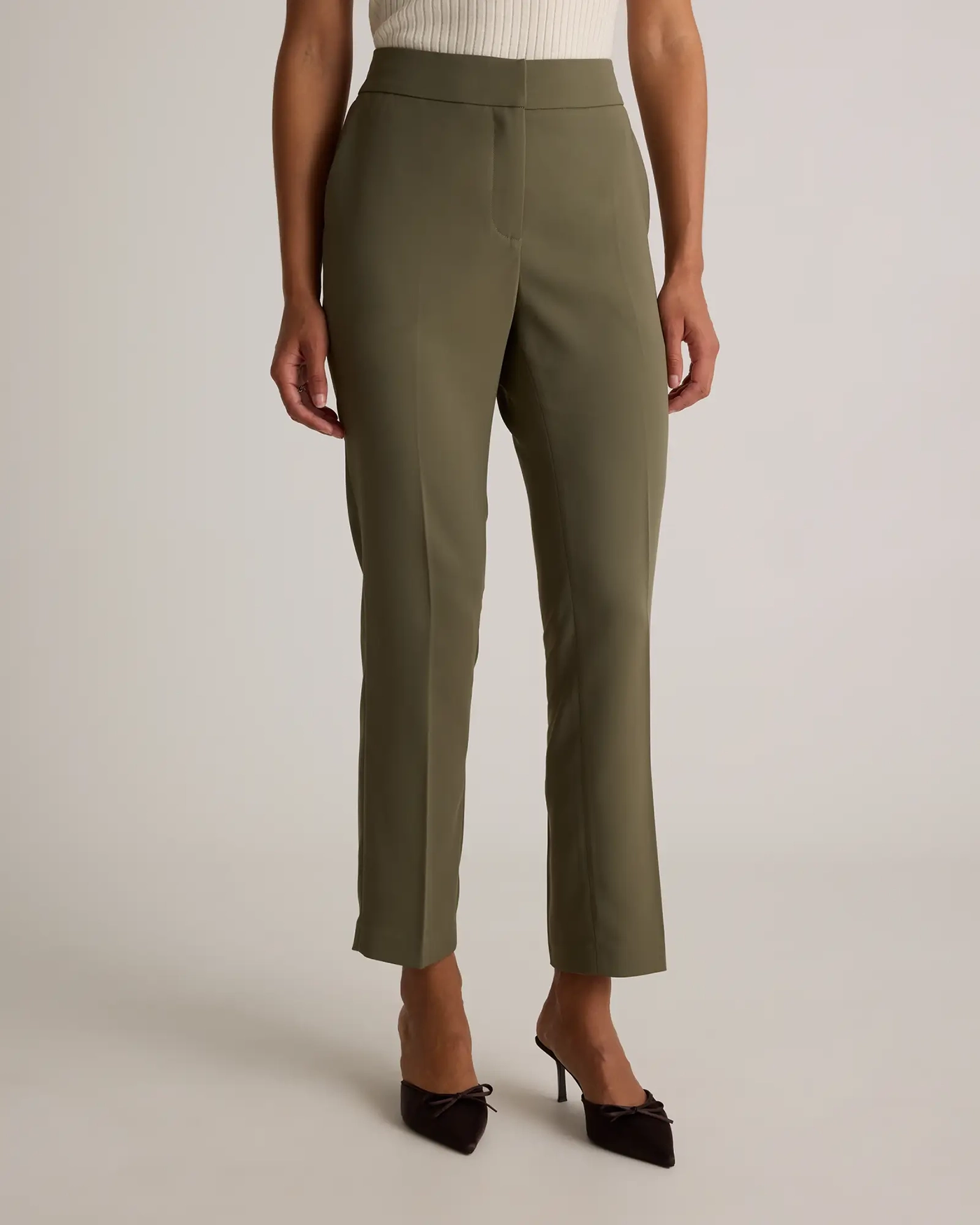 Discover the perfect blend of comfort and sophistication with our Stretch Crepe Ankle Pants. Designed for the modern woman on the go, these pants offer a flattering fit that transitions seamlessly from day to night.