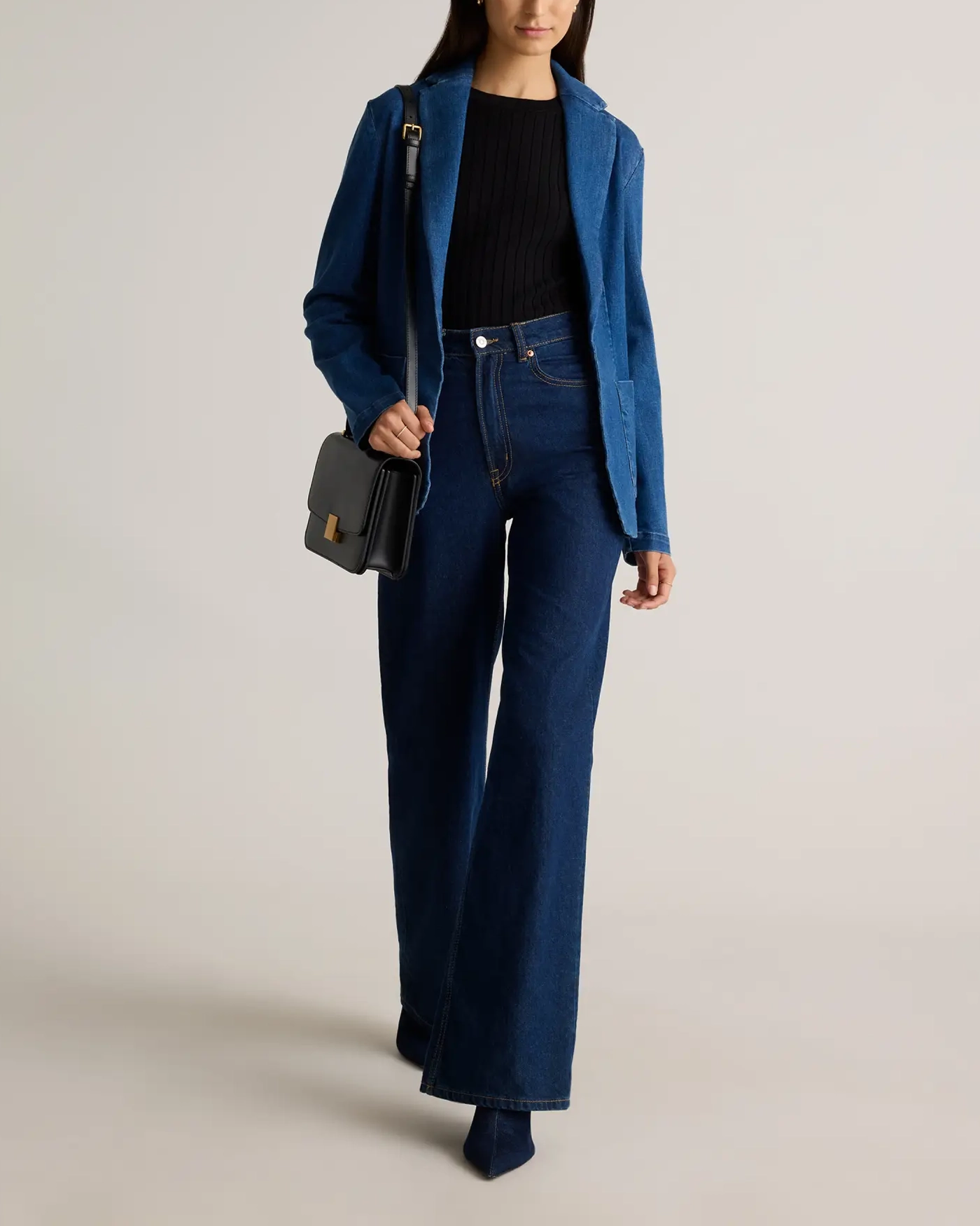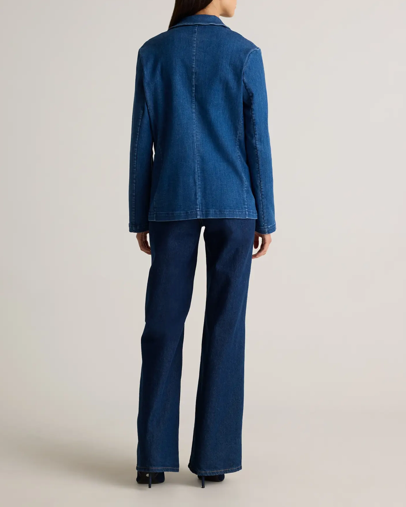 A chic and tailored addition to your wardrobe. Our Stretch Denim Blazer is crafted from soft organic cotton with just the right amount of stretch. The slim-fit design flatters the figure while offering ease of movement, making it perfect for both work and casual outings.