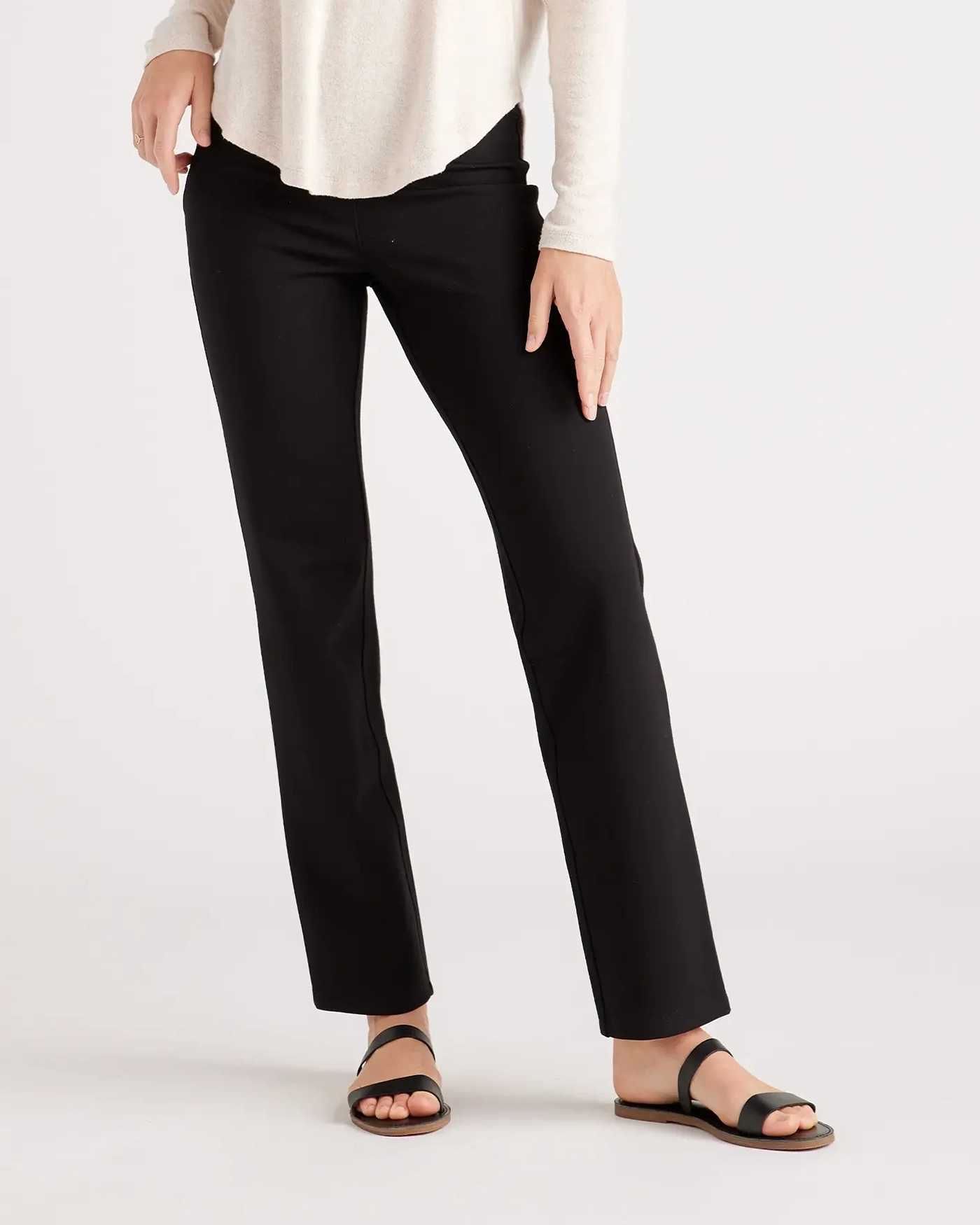Meet the straight cut version of our favorite ponte pants. Feels like a yoga pant but with the classic look of your favorite straight legged pants. A flattering design and silhouette, these pants are equally comfy and versatile. Plus, the 4-way stretch you'd usually see in squat-proof leggings makes these appropriate for any setting.