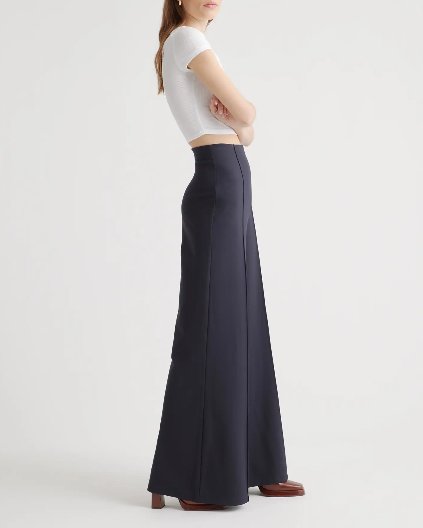 Our Ultra-Stretch Ponte Super Wide Leg Pants is the perfect combination of comfort and style for any occasion. Crafted from high-quality ponte fabric with an ultra-stretchy feel, these pants provide a flattering wide leg cut and an extra high-rise waistband for an elongating and chic fit while ensuring all-day comfort. Pair it with a blouse and heels for a sophisticated office look, or dress it down with a t-shirt and sneakers for a casual daytime look.