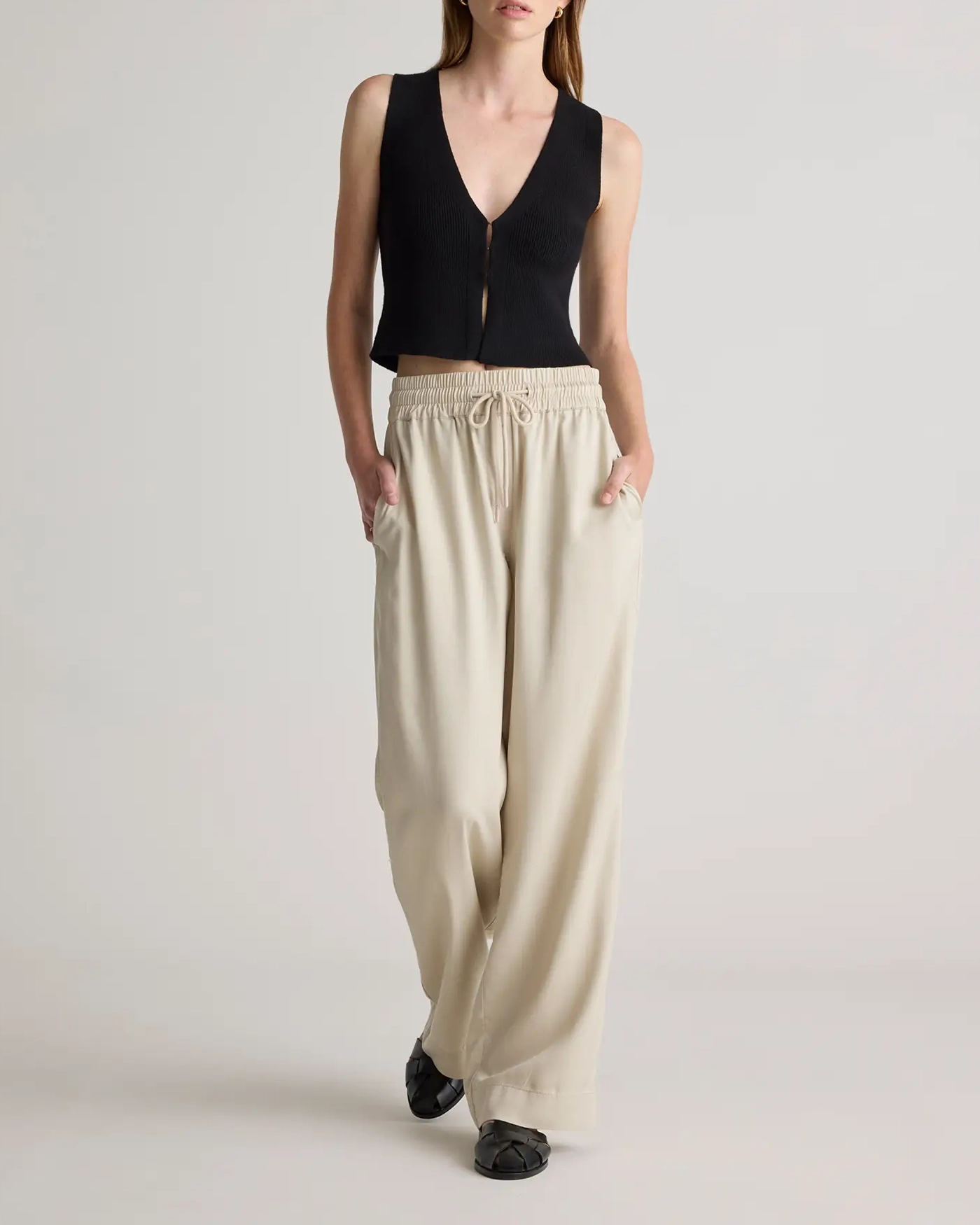 From lazy Sundays to busy weekdays. Meet our Vintage Wash Tencel Wide Leg Pant—one that effortlessly transitions from day to night with its wide leg cut and the perfect blend of drape, breathability, and durability. You'll love our more eco-friendly fabric made from Tencel, a biodegradable fiber made from cellulose found in wood pulp. It's super soft and uses 10-20 times less water in production compared to cotton.