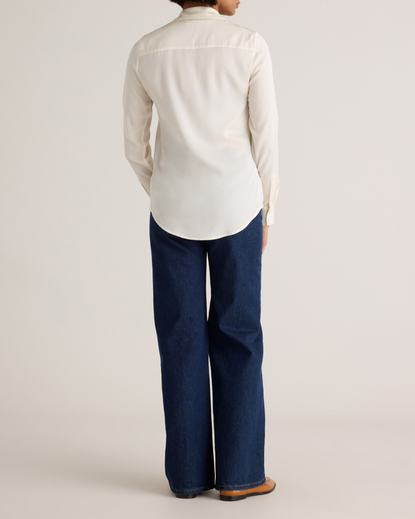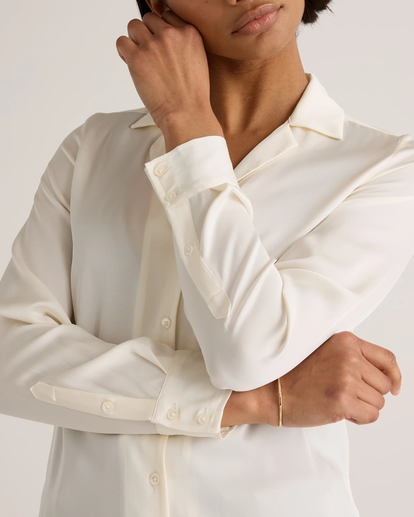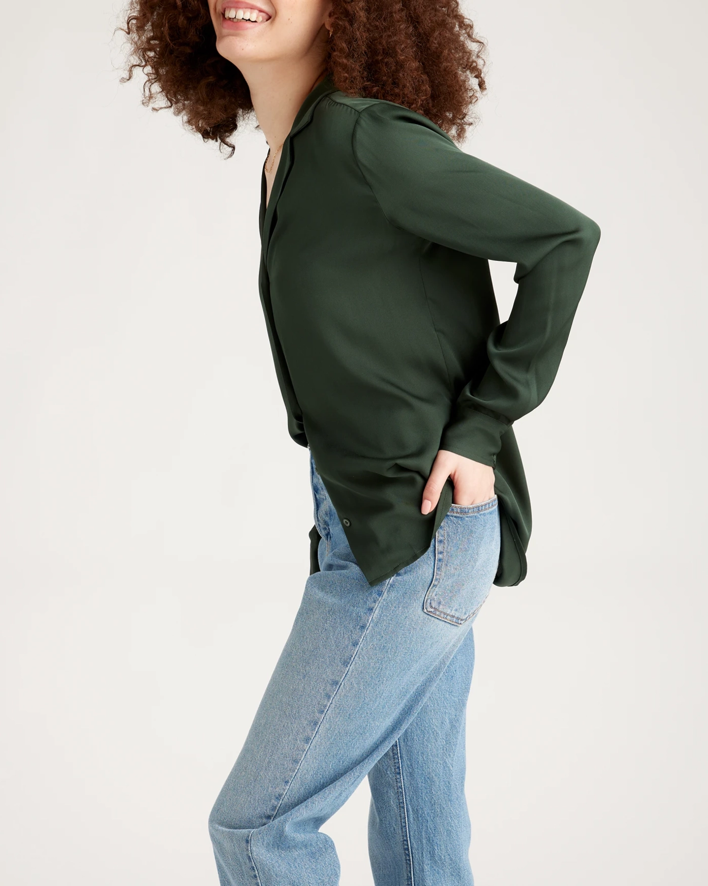 Take your collared look up a notch. We made this notch collar blouse with a relaxed, slim fit with a clean and crisp look for an everyday appeal. Perfectly made to be layered or worn solo. Plus, silk fiber contains 18 kinds of amino acids that make it amazing for skin nourishment, hypo-allergenic, and naturally thermoregulating to help maintain body temperature.